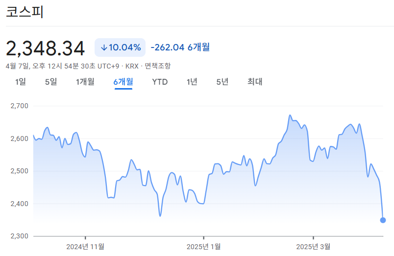 미국은 한국산 수입품에 25%의 고율 관세를 적용해 전자·자동차 산업에 직접적인 타격을 주고 있으며, 코스피200 선물 급락으로 사이드카가 발동되고, 프로그램 매매 차단 장치까지 가동되는 등 투자 심리가 극도로 위축된 상태입니다.